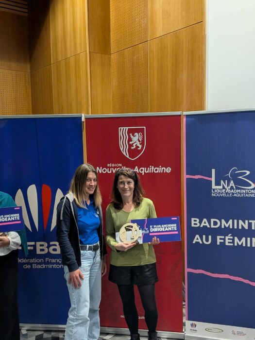 À l’occasion de la Cérémonie Régionale de l’Engagement pour la féminisation, organisée par par la Ligue Nouvelle-Aquitaine de Badminton, Stéphanie Sardos, présidente du Club Castelnau Badminton a été récompensée dans la catégorie des dirigeantes les plus expérimentées, saluant ainsi 16 années d’engagement bénévole au service du badminton et du sport associatif local.