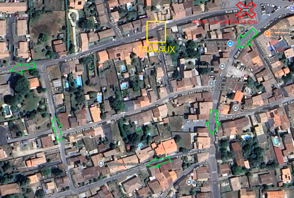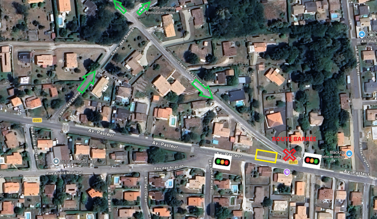 - Déviation mise en place par la rue Camille Godard, le chemin du Moulin Foulon et le chemin du Petit Bois
