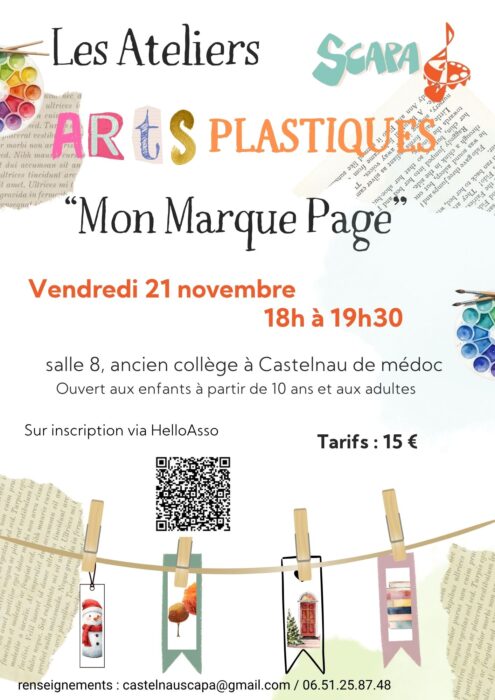 La Scapa propose 1 atelier d’arts plastiques pour les enfants dès 10 ans et adultes sur le thème « fais ton marque page »