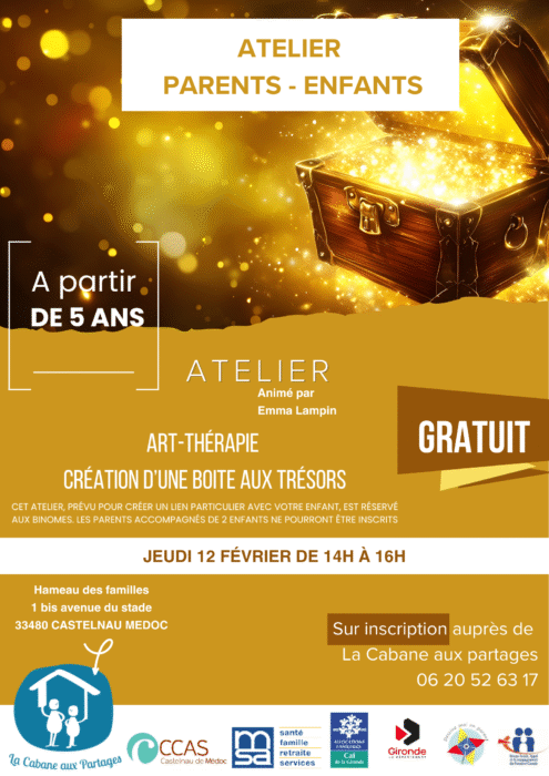 En binôme avec votre enfant (ou votre petit enfant, ou votre nièce ou neveu…), Emma Lampin vous guidera afin de fabriquer ensemble une petite boite aux trésors, pour y ranger vos secrets ou vos souvenirs. Cet atelier est sur inscription et ne pourra recevoir de trio.