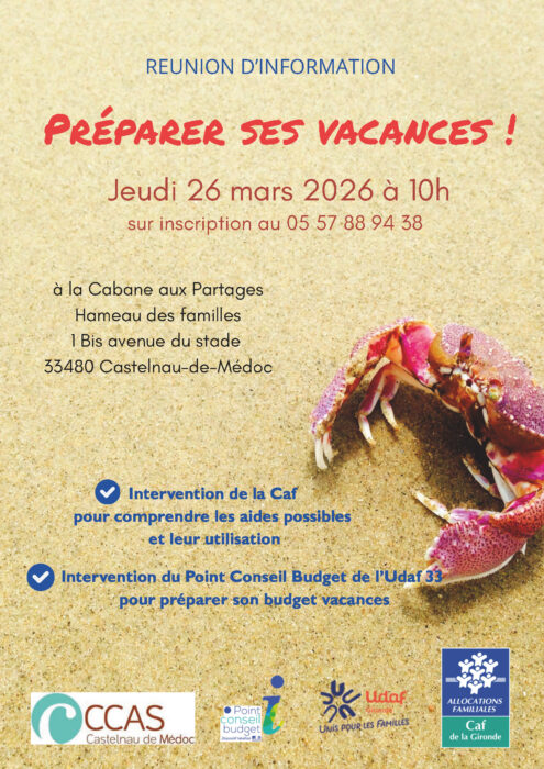 Le Centre Communal d’Action Sociale de Castelnau de Médoc et ses partenaires organisent une réunion d’information dédiée à la préparation des vacances.