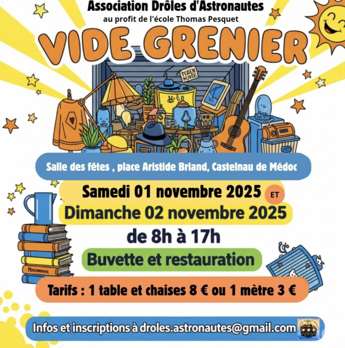 L’association Drôles d’Astronautes organise un vide grenier au profit de l’école Thomas Pesquet !